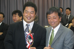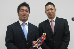 | Scout Team of the Year受賞の佐渡アシスタントトレーニングコーチ | Care of the Year受賞の#24中野選手 |